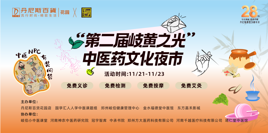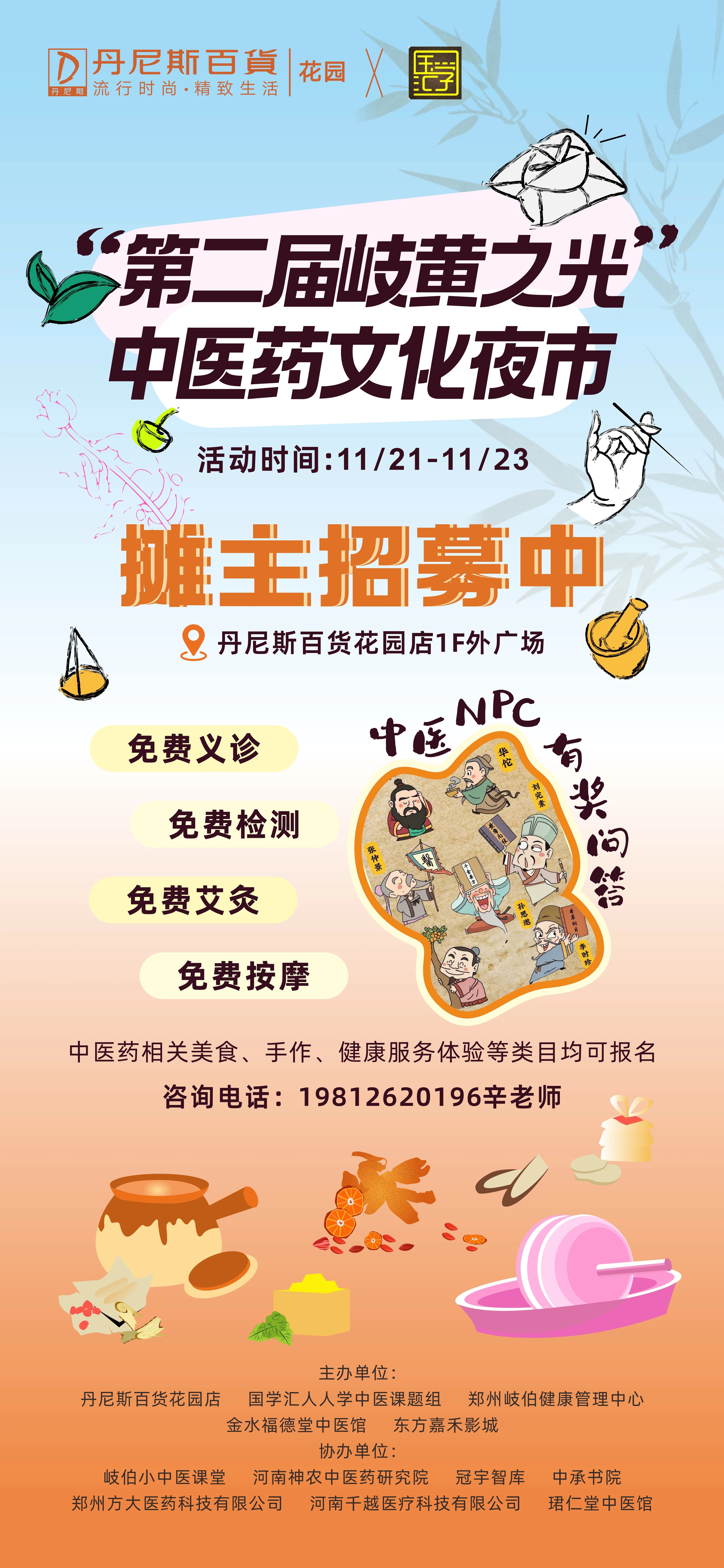 这是一场中医药与城市夜经济的浪漫相遇,是一次传统文化与大众生活的深度对话。2025年11月21日-11月23日,由国学汇、丹尼斯、东方嘉禾影城、岐黄公馆、岐伯小中医课堂、河南神农中医药研究院等多家单位联合主办的“第二届岐黄之光中医药文化夜市”将在郑州金水区花园路丹尼斯广场盛大启幕!