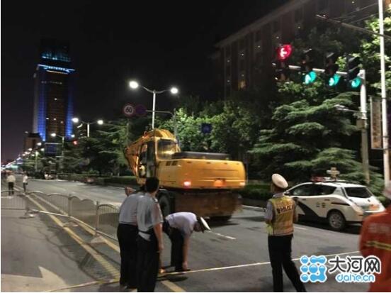 晚上9点20分,一辆钩机和一辆挖掘机赶来支援,对路面进行挖掘破除。
