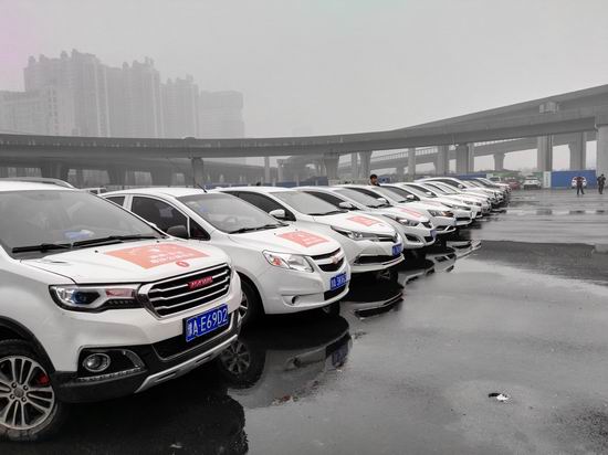 (图为本次整装待发的滴滴敢扶公益车队)