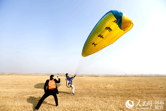 滑翔爱好者在实验区内训练