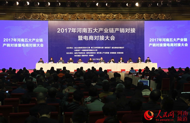 3月21日,根据河南省委经济工作会议精神和省政府工作报告安排,由省企业服务活动办公室、省工业和信息化委、财政厅、住房城乡建设厅、中原资产管理有限公司等单位主办的2017年五大产业链产销对接大会在郑州举行。重点选取冷链食品、智能装备与机器人、智能终端与智能硬件、先进钢铁材料、品牌服装作为五大产业链产销对接内容,开展上下游企业产销对接活动,帮助企业开拓市场。