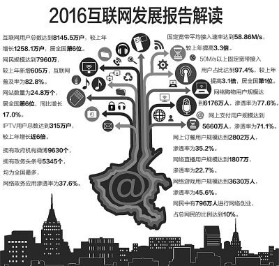 5月16日,省通信管理局、省互联网协会发布2016河南互联网发展报告,通过分析报告中的数据可以清楚地看到,互联网正加速向经济社会各领域融合渗透,新业务、新业态、新模式不断涌现。网络经济正在成为经济增长的新引擎,转型升级的新动力,扩大消费的新渠道。2016年,河南互联网用户增长、宽带速率提升、高带宽用户占比、IPTV用户增长、互联网宽带接入端口增长等基础数据亮眼。尤为值得一提的是,随着移动互联网的快速发展和提速降费的扎实推进,互联网应用呈现快速增长的发展态势,生活正在被互联网改变。