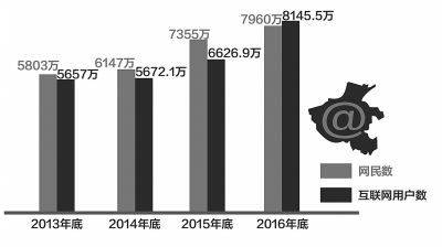 省通信管理局、省互联网协会5月16日发布了《2016河南省互联网发展报告》,从网民规模与结构、网民上网行为与感知、网络安全等方面阐述了河南省互联网发展状况。报告显示,截至2016年12月底,河南省互联网用户总数达到8145.5万户,居全国第6位;网民规模达到7960万,新增605万,互联网普及率为82.8%。