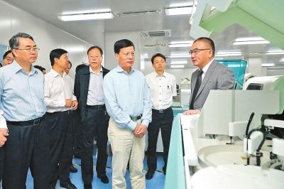 谢伏瞻一行首先来到郑州市经开区调研。安图生物是一家专业从事体外诊断试剂及仪器研发、生产、销售的创新型企业。谢伏瞻察看了该企业生产的微生物质谱仪、全自动化学发光测定仪等新型医疗设备,深入了解企业研发投入产出情况。当得知企业今年1至4月份实现产值2.36亿元,同比增长29%,谢伏瞻对企业创新发展的喜人态势表示赞赏。他对企业负责人说,要建立激励机制,吸引人才、留住人才;要利用资本市场融资,扩大生产、壮大规模,实现更快发展。