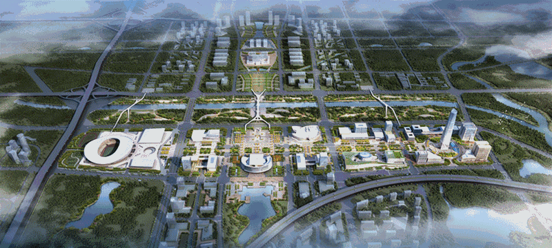 奥体中心项目由“一场两馆”组成,其中有6万座体育场、1.6万座体育馆(固定座1.5万座,活动座1000座)、3千座游泳馆。从空中向下俯视,“两馆一场”与周边城市道路和城市景观有机结合,像是整个中央文化区的一颗明珠。 这座高规格的体育活动中心,将会极大提升城市的体育运动水平和城市活力。