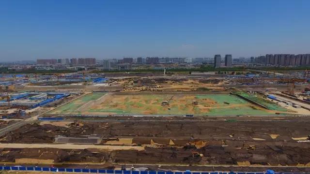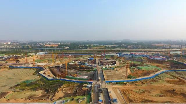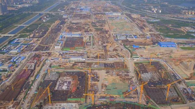 ▲航拍的郑州城市中央文化区(CCD)建设工地全貌