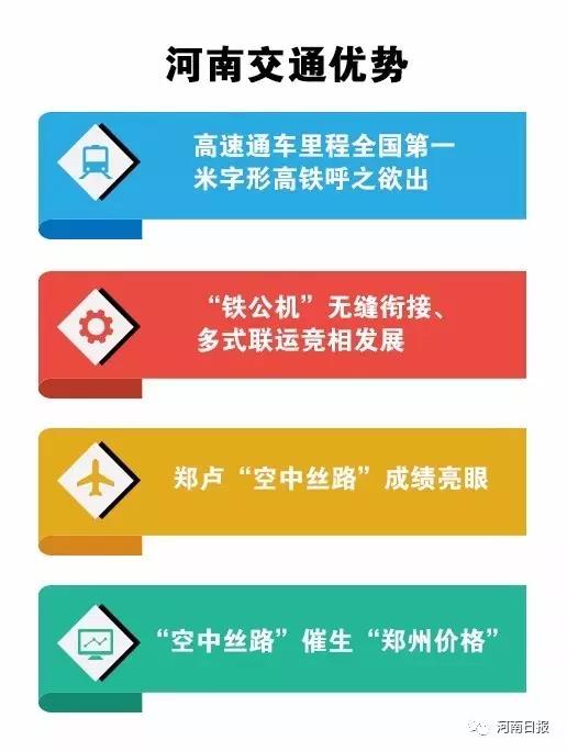 河南主动作为,不断扩优势、补短板,好成绩都是扎扎实实干出来的。比如河南的交通优势,高速通车里程全国第一,米字形高铁呼之欲出,“铁公机”无缝衔接、多式联运竞相发展,郑卢“空中丝路”成绩亮眼,“空中丝路”催生“郑州价格”……