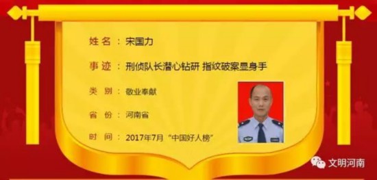 宋国力,男,1972年出生,河南省焦作市武陟县公安局刑事侦查大队技术中队副中队长。