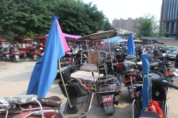 一眼望去,基本上是电动车,还有一部分是我们经常在地铁口、公交站见到的运营电摩的。看大门的工作人员告诉我们,这些都是违章、乱停乱放、非法营运的电动车,太多了,他们的下班时间经常会推后——“人家来了,等了很长时间,总不能不让取”。